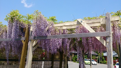 こんにちは、ミヤザワフルート飯島工場です★ 飯島工場は長野県上伊那郡飯島町にあります。 ふたつのアルプスが見えるまち、飯島町です。 飯島工場近くにある、アイタウンの藤がとてもきれいに咲いていました。 よく見ると紫とピンクがあります。 これぞ藤色ですね(*^^*) 藤棚の下には涼めるように椅子が設置されています。 藤棚の下に入るととても幻想的な気分になります。 藤の花は天ぷらなど、食べることもできるのです! 食べたことはないのですが。。 アイタウンには、ホテル、レストラン、歯科...