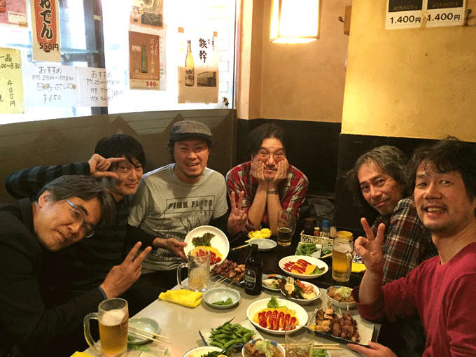 JUGEMテーマ:LIVE H.Sプロジェクトライブ 今日は午後から来年のプロジェクトライブのミーティング 真っ昼間の2時に呑める場所があるのかとゆーと さすが渋谷とゆーか、24時間の飲み屋は結構ある そろそろ新たな試みをやりたいなーと色々模索していたんだが 「おもしろそーじゃん」と集まってくれたのが↓写真のメンバー この面子に西川貴博氏が加わってのライブとなる キリのいいところで元号が切り替わった頃を予定しています ↑ジャーナリスト山田厚俊氏、多田暁氏、扇田裕太郎氏、オレ、小山卓...
