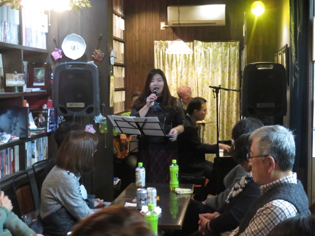 本日のジャズ・ライブ♪わたらせ音楽会2♪ は、多くの皆様にご来店いただき、素敵なひとときを過ごすことができました。セッション・タイムでは、ヴァイオリンやピアノ、ヴォーカルと多彩なゲストが登場し、ステージを盛り上げてくれました。 もちろん4人のメンバーの演奏とヴォーカルは見事で、お客さんも大満足の夜でした。 皆さん、ありがとうございました。(サギも応援に駈け付けました。)