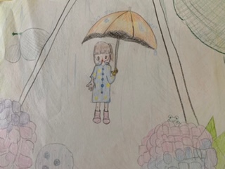 JUGEMテーマ:ピアノ教室/音楽教室 今年の梅雨は本当に長く、なかなか明けませんね。 特に今日は蒸し暑く不快に感じていらっしゃる方も多いのではないでしょうか? どうぞご自愛下さい。 そんな中、姉妹でレッスンにいらっしゃるMちゃんが、お姉ちゃんのレッスンを待つ間、かわいいイラストを描いてくれました。 うっとうしい梅雨もこんな素敵なイラストがあると、心がほっとしますね。 Mちゃんありがとう。