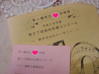 JUGEMテーマ:ピアノ教室/音楽教室 昨日は 中学校での合唱コンクールに 伴奏者指導ピアノ教師として お招きを受け 行ってまいりました。 このようなご配慮をしていただける 中学校の先生方 またPTAの皆様には 本当に感謝の気持ちでいっぱいです。 実は次男が剣道の練習中 アキレス腱を切ってしまったので 手術やギブス装着などで 病院に付き添いながら その合間に ナイスタイミングで お二人の生徒さんの演奏を聴くことができ 本当によか...