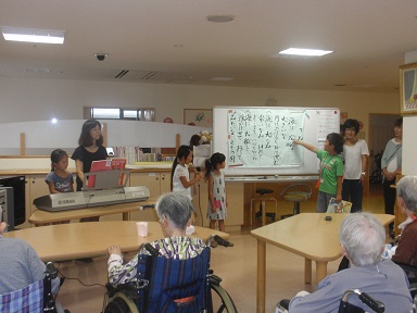 JUGEMテーマ:ピアノ教室/音楽教室 毎月一度 近くの高齢者施設に 歌のボランティア訪問をさせていただいていますが 夏休みは ピアノ教室の ピアノちゃん ピアノ君にもお声をかけて みんなで楽しいひと時を過ごさせていただいています。 今月は26日水曜日がその日でした。 初めてピアノちゃんたちは ちょっと緊張気味。 もう何度にもなるピアノ君ピアノちゃんが リードしてくれます。 ♪うみ ♪きらきら星 ...