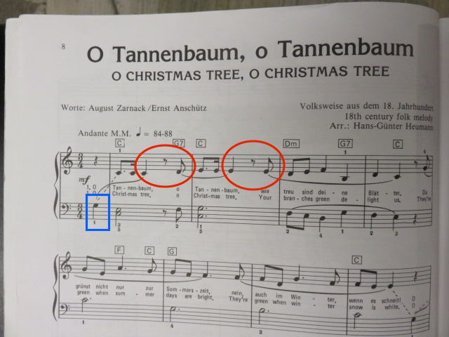先日 紹介した「ドイツの子供のクリスマスソングベスト5」で 堂々の第一位だったのが 「もみの木」でしたが その「もみの木」、今年も 何人かのピアノの生徒が練習中です。 「もみの木」(O Tannenbaum)、日本でも有名ですよね。 いい曲です。 ですが・・・ この曲を与えると、 私には 妥協しなくてはならない点があるのです。 それは・・リズムと拍子。 この「もみの木」は3/4拍子です。 調子はいろいろ変えられても、拍子は変えることが(ほぼ)できな...