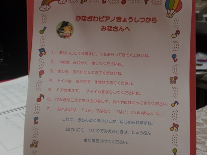 JUGEMテーマ:ピアノ教室/音楽教室 4月に教室の決まり事を保護者の方にお配りするときに 小さいピアノちゃんピアノくんたちには こちらを 差し上げました。 先般のスノーホワイトの会でも ご紹介したところ 早速同じようなものを作って 生徒さんの目につくところに 置きます!! と言ってくださった先生がおられました。 そうか!!! 今の時期こそ 読んでもらいたい内容もあるので 私も テーブル...