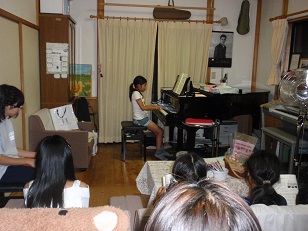JUGEMテーマ:ピアノ教室/音楽教室 サマコン中盤の第3グループは 9人のピアノちゃんピアノ君と ママ 弟ちゃん 妹ちゃんの総勢19名での会になりました。 まずは 皆さんにソロ曲を弾いていただきましたが このグループは 年齢順。 最後に弾いてくださった中学3年生のお姉さんの演奏に 皆さん 目は釘づけでした♡ それから ...