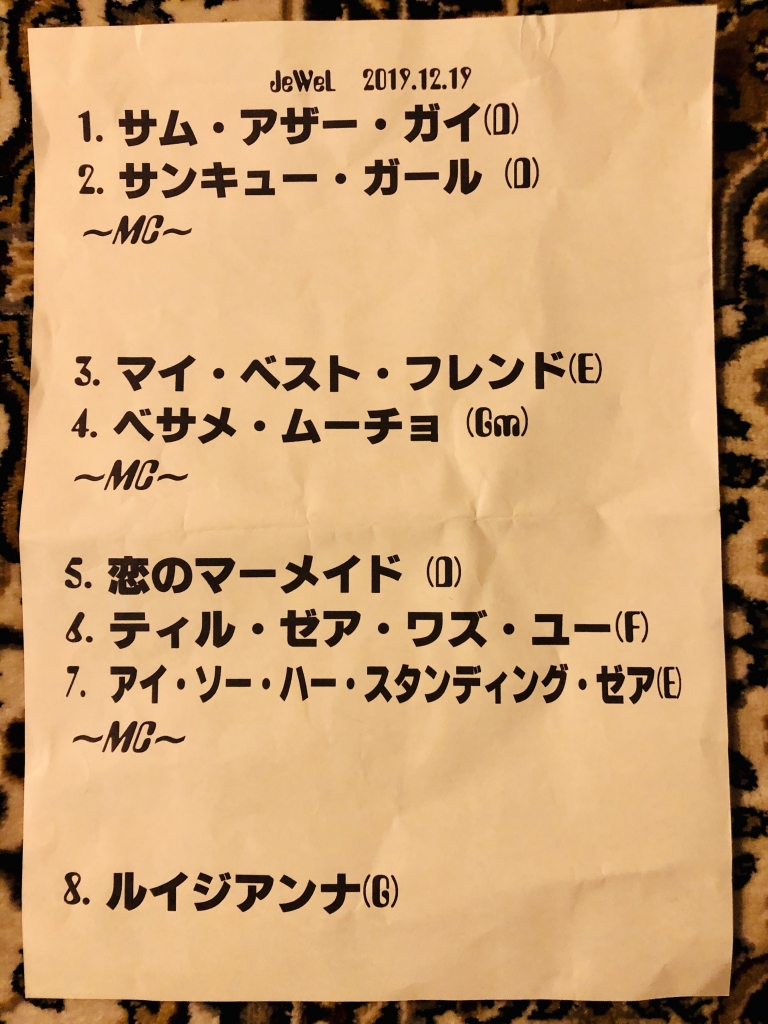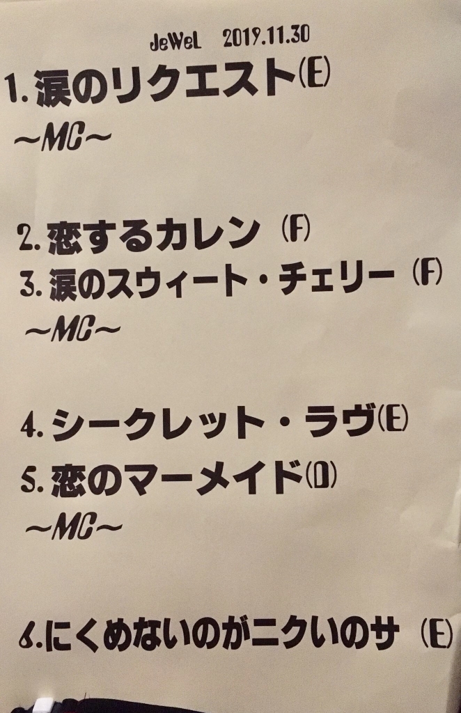 お疲れ様です。けーすけです。 先日は、下北沢HALFさんにてライブでした。 今回は80年代の音楽にフィーチャーしたイベント。いつもと違う雰囲気で演奏できて面白かったですね。 この日限り、我々はTHE HELLOという名前で出演しました。 なぜこの名前かというと、 スーパーギタリストの野村義男さんがかつて所属していたグループ「THE GOOD-BYE」が由来となってます。 セットリストはこんな感じ。 我々Jewelのオリジナル曲も入れ...