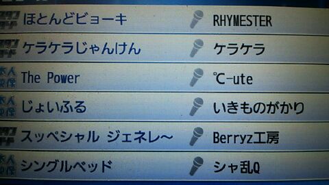 「シングルベッド」からの開幕となりました。何となくね。 「スッぺ」は、入力ミスなんです!とゆーのも、事前に次カラオケ行ったら歌うモノを普段からメモってるんですが、この曲もメモっていました。 それは、ベリの多くの曲がf1で本人映像で歌えると分かったから!…なのに、昨日行ったらベリの本人映像全然増えてなかった(新曲のみ)! これどゆ事?!まだ先の話??スゲーがっかりしたもん。 「グッド・ナイト・ベイビー」は、難しいなあw 「雪の華」や「愛嬢」といった十八番をドン...