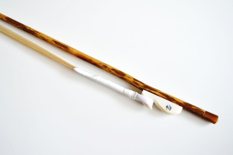 「張氏湘妃竹二胡弓」-A 「張氏湘妃竹二胡弓-A」は、艶が出るまで磨き上げられたベージュ色の竹棹に、弓元・弓中・弓先それぞれに細雪のようにランダムに斑点が折り重なって現れています。持ち手のカーブはやや浅く、太さは弓元から弓先までほぼ均一です。しっかりした重みがあるので、安定した運弓やダイナミックな演奏表現を追求される方におすすめします。 今なら、本品ご購入でもれなく 「松節駒」と「5000円以上ご購入プレゼント」のWプレゼント がもらえます♪...