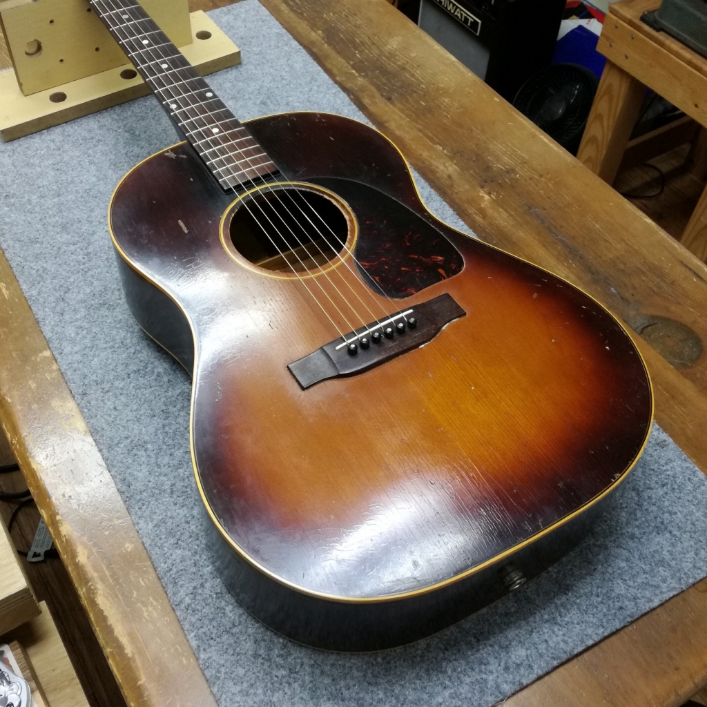 JUGEMテーマ:楽器 ■ギブソン LG-2 ’54 ブレイシングの剥がれ修理 表板と裏板にブレイシングの剥がれが数ヶ所ありましたので、修理いたしました。