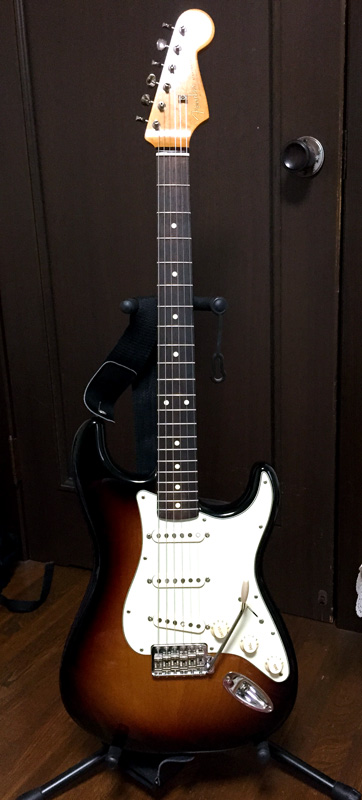 JUGEMテーマ:エレクトリックギター I橋楽器福岡店で状態の良いストラトを発見買っちゃいました(何軒回ったことやら・・)中古ってことなんだがピックガードのプロテクトシールも剥していないし(ちなみに他の中古を調べたらプロテクトシールは付いていない)ベルトがあたる部分にも傷一つ見当たらない↑サンバーストのローズ指板いっちゃんオーソドックスなストラト、一本欲しかったんだ↑アームが鋭角に曲がっていたせいでちゃんとセット出来なかったんだが傷がつかないようテープを巻いてペンチでエイッ!きっかり90度に修正した...