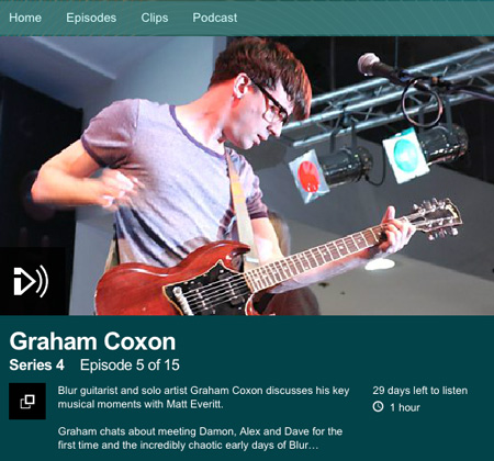 JUGEMテーマ:UK音楽好き集まれ! BBC Radio6「The First Time With...」Guest:Graham Coxon Graham Coxonが影響を受けた曲やBlur&自身の曲の紹介をする。 結成当初のメンバーの話も出てきます。 29日間再放送中。 「The First Time With...」Guest:Graham Coxon BBC Radio6「The First Time With...」―Guest:Slash(Guns N’Roses) Slashが過去を振り返り、 思い出の曲とガンズ&自身の曲を紹介をする。 まさに英/米国両方で育った人生...