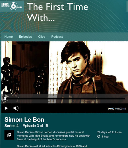 JUGEMテーマ:UK音楽好き集まれ! UK音楽情報(BBC Radio:Simon Le Bon) BBC Radio 6 「The First Time With...」 サイモン・ル・ボン(デュラン デュラン)特集 ゲストのサイモン・ル・ボンが 昔を振り返りながら影響を受けた曲や デュラン デュランの曲を紹介しています。 最近ニューアルバムを発売し、 最注目されていますね。 私の一番好きなデュランデュランの曲は 『Planet Earth』です。 サイモンも選んでいるので好きな曲なんでしょうね。 ビデオはこれだけはちょっとパイレーツファシ...