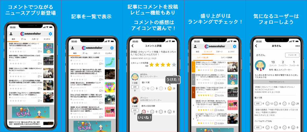 JUGEMテーマ:スマートフォンのアプリ JUGEMテーマ:仕事のこと JUGEMテーマ:ニュース オリバナのニュースリーダーアプリ「コメンテーター」がアップデート!! コメントのランキング機能を搭載しました。 今、どんなニュースが盛り上がっているのか一目でチェックできます。 是非、話題のニュースに参加しませんか? iPhone&Androidにて、無料配信中!! 下記からインストール先へ飛べます〜