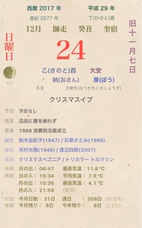 JUGEMテーマ:朝の一言 JUGEMテーマ:本日の更新 JUGEMテーマ:〜癒し〜 12月24日 日曜日 今年も残すところ後8日余り、年末から年始にかけてお忙しいとは思いますが、 体調をくずさない様にお過ごし下さい。 大安のクリスマスイブです! 和洋折衷な感じ....