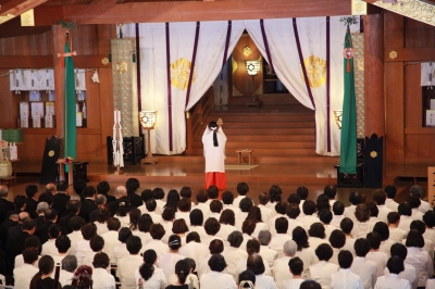 JUGEMテーマ:オーケストラ 5月25日、朝7時過ぎに出雲大社に到着すると、すでに社務所の方が胡床(十文字に脚を交差する折りたたみのイス)の準備を始めておられました。 8時30分のご祈祷まで一時間しかなく、まずはパンチカーペット、コンパネなどの搬入。 つぎに板の間、上下の廊下にパンチカーペットを敷き詰め養生。 それから神楽殿を囲っている重さ約30kgの格子戸を24枚はずし、客席を広くしました。 この段階でもうすでに8時30分を過ぎていて、いったん作業を中断しご祈祷の方に場所をお渡ししました。 荷...