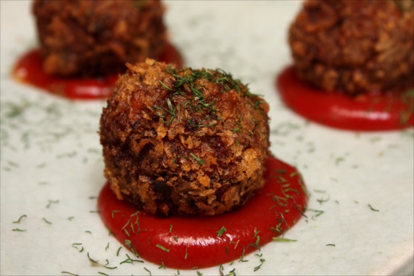 メンチボール、球形のメンチカツです。一昨日作った包まないロールキャベツの餡が余っていたので、お塩とナツメグを足して作って見ました。球形に形成してパン粉を付け、揚げるだけです。ケッチャップのお立ち台に乗せ、ディル(乾燥タイプ)を降り旨旨に完成です。ディルは生でも旨旨だと思いますよ〜。 挽肉にはキャベツ、にんじん、椎茸入りで風味豊か。食感も楽しいです。 それと、、、 こちら、島屋さんの旨旨生揚げ。 こんがり焼いて、ぶんぶん生姜と青唐辛子の醤油漬けで味付けをして頂きます。ぶんぶ...