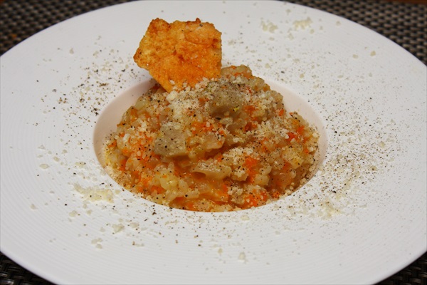 <ニンジンのリゾット> 冷蔵庫にニンジンが死蔵し掛けていたので、自家製のパンチェッタ(これとか、これとか、これ)を入れてリゾットにすることに。 ・パンチェッタは賽の目に切って塩抜きしておく。 ・ニンジンはフードプロセッサでみじん切りに。 ・玉ねぎはざく切りに。 ・にんにく(一玉)をみじん切りに。 最近のにんにくは国産でも余り匂いませんねえ。。。 ・オリーブオイルににんにくを加え香りを引き出します。 ・水分を良く切ったパンチェッタを加えます。 ・パンチェッタの表面に火が通ったら玉ね...