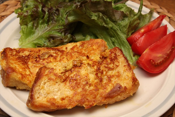 本日のランチは、この前はいつ作ったのか全く分からないほどの久しぶりにフレンチトーストです。洗って手で千切ったサラダ菜とトマトを付け合わせに。 厚切りの食パン3枚をそれぞれ半分に切り分け、それに対して玉子6個、牛乳360cc、お砂糖じゃんじゃん、シナモンばっさばっさを良く混ぜパンを浸します。それを冷蔵庫で1日以上漬け込みます。 翌日、いよいよ食べよう!と言う気持ちになったら、フライパンを熱しバター(無塩、有塩は持っていないのです)を溶かし、中弱火でじっくりこんがり両面を焼けば旨旨に完成で...