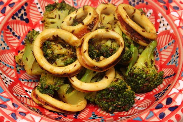 ありそうで作ったことが無かった、自分的には創作料理のブロッコリーとイカのカレー炒めです。 実はFBのお友達とブロッコリーの茎のレシピでちょっと盛り上がり、茎目当てで買ってきたブロッコリーなのであります。お花の部分ももちろん美味しく食べよう、と言う事で、近所の郊外型大型鮮魚店で新鮮なスルメイカを買ってきていざ調理! たっぷりのギーを熱し、クミンシードをドバッと投入、香りを引き出します。わたと軟骨を抜いて輪切りにしたイカを炒め、一口サイズに切り分けレンジ600Wで1分半加熱したブロッコ...