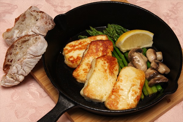 以前伺った近所のギリシャ料理店で食べたハルーミチーズの事が忘れられず、先日池袋組レッスンの帰りに通販でもお世話になっている神楽坂のチーズ屋さんへ行きキプロス産のハルーミチーズを遂にゲット! ハルーミチーズは薄切りにしてオリーブオイルでソテーし、少量のお塩と胡椒で味付けします。付け合わせのグリーンアスパラガスとマッシュルームも、レンジ600Wで4〜50秒加熱してからソテーします。付け合わせに美味しいバゲットを! 美味しい!!\(^O^)/ 噛みしめると新雪を踏むような「キュッ、キュッ」と...