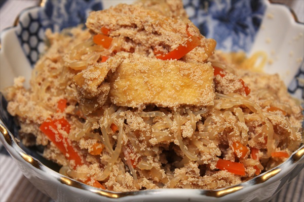 待っていましたこの季節!寒いのは嫌ですけど、冬の旨旨の一つ真鱈は大好き。近所の郊外型大型鮮魚店で真鱈子を見つけましたので、早速に子和えを。 さっと茹でで臭味を抜いた糸こんにゃくをから煎りし、そこへ細切りのにんじんと短冊切りの揚げ(油抜きしておく)を加えさっと炒め合わせ、お醤油、味醂、お酒、お砂糖、出汁少々の合わせ調味料をたっぷり加えます。真鱈子は中の卵だけ包丁の背などで取り出しておき、加えます。煮汁が無くなるまで焦がさないよう煮詰めれば完成です。美味しいのよ〜(^^)v ご飯は生揚げ...