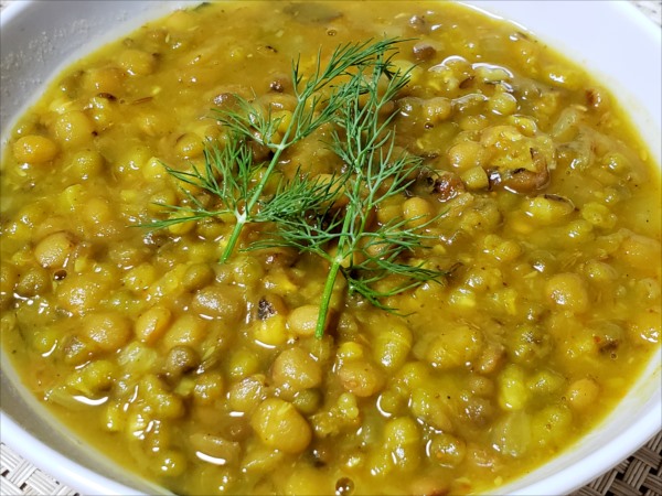 カレーの中で一番好きなダールカレー、お豆のカレーです。豆はムング豆(緑豆)とレンズ豆を3時間ほど水に浸してから使います。今回、ムング豆(緑豆)を300g、レンズ豆を200gで作りました。 多めのギーを熱し、にんにくのみじん切りで香りを出したらみじん切りの玉ねぎ(小3個分)を加え、とろ〜っとなるまで炒めます。トマトのざく切り(大1個分)とみじん切りの青唐辛子(大1本分)を加え、画像のように大体形が崩れたら豆を加えます。 水を足し、シーズニングを加えて1時間〜1時間半弱火で煮込みます。焦げな...