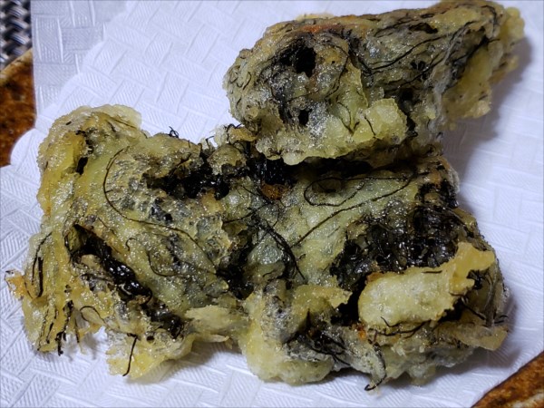 もずくの天ぷら、初めて作ってみました。潮の香りが心地良い旨旨天ぷらです。 この日はお刺身でも食べたいなあ、と近所の郊外型大型鮮魚店へ行ったのですが、そこで試食されていたもずくが美味しくて買ってきたというわけです。試食は茹でてポン酢でしたが、効果ありますね、試食(^_^;) そこにいた店員さんが「天ぷらも美味しいよ」と言うことで作り方を教わってきたんですよ。作り方はとっても簡単、さっと洗い小麦粉をまぶしてから衣を付けてカラッと揚げるだけ。 揚げたら油を切って熱いうちに塩をさ...