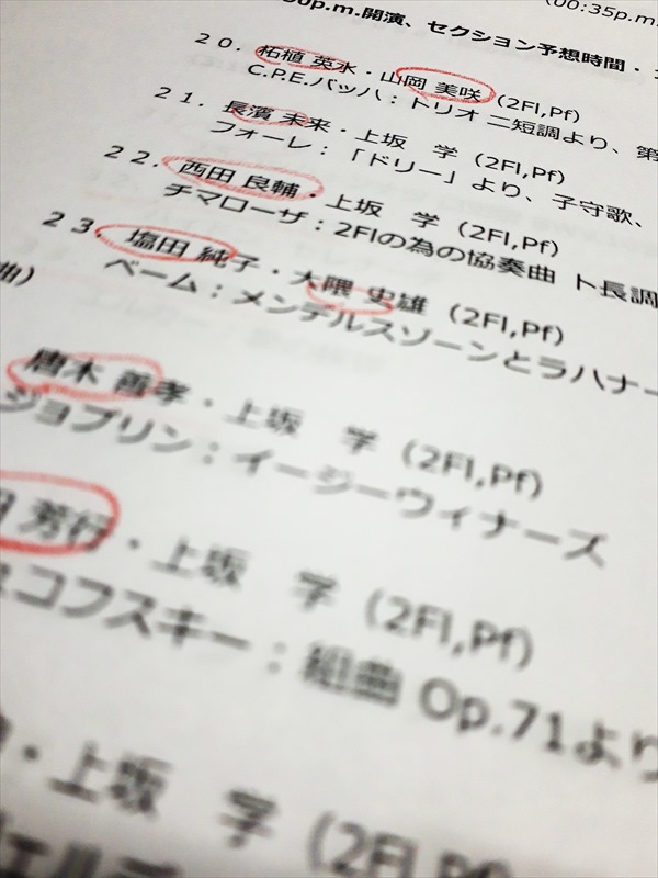 フルートクライス大発表会Vol.27は10日ほど後の来週末12月23日(土・祝)の開催です。開催直前のこの時期は、参加費の管理、打ち上げ参加者の決定、プログラムの作成、出演者一覧画像の印刷発注(50枚ほどですが、自宅のインクジェットで印刷するよりネットプリントに出した方が断然リーズナブル)など事務作業に忙しい。プログラムを印刷する前にネットに公開したプログラムへは、参加者からの校正をお願いします(見て何かあったら連絡してね、という感じ)。自分の名前があるか、曲目は正しいか等々、自分のことなのでとても正確...