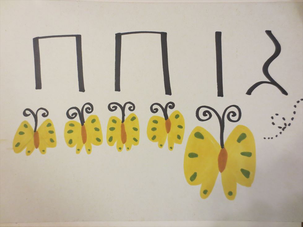 JUGEMテーマ:音楽教育 ・覚えてもらったばかりの 「てぃてぃ」(2つ一組の 八分音符) ・最初に覚えた「た」(四分音符)→ ハートビートに基づくテンポ ・ろうそくの火を 吹き消す動作をしながらの「ふぅ」(四分休符) この3つの リズム要素を定着させる目的で、子供たちが飽きないように 身の回りのものを図案化し、それぞれの リズムを表す記号を併記したフラッシュカードを いろいろ用意します。 ↑のカードは、「蝶々」 前回同様、 「蝶々が たくさんいるね〜!」...