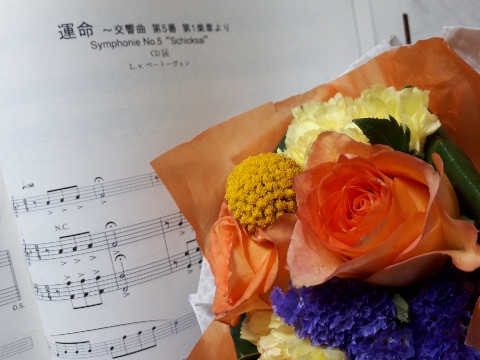 JUGEMテーマ:クラシック音楽 保育園にて園児の為のミニコンサートがありました。 幼い頃から名曲に触れて欲しい主旨で、今回はベートーヴェンをテーマに、 ”運命”、”エリーゼの為に”、”喜びの歌”などをフルートとピアノで演奏しました。 メロディーや曲の雰囲気が少しでも心に残ったら嬉しいナ。 園児の皆さんから頂いたブーケに心が和みます。
