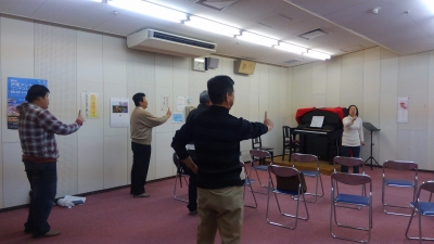 JUGEMテーマ:オペラ 2週間ぶりの更新です! ブログは少々停滞しましたが、毎週土曜日の夜に練習は欠かさず行っていましたよ(*´▽`*) さて、今日も練習日でした! 年度末ということもあり、欠席が多くなってしまいましたが、充実した練習となりました♪ まずは準備体操&発声練習 ↑発声練習では、ロウソクに見立てた指を前に立て、腹筋を意識しながらひと吹きでロウソクの火を消す動きをしました。 その後は音高を決めて、発声練習。 そして男声・女声に分かれて音の確認を行いました。 人数が少なく...