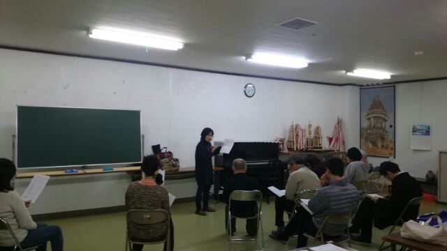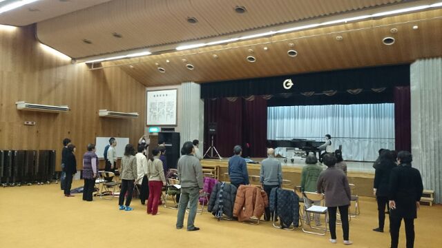JUGEMテーマ:オペラ 昨日の練習は智頭町総合センターでした! 8月公演「エフゲニー・オネーギン」の舞台設定は昭和31年の鳥取の山村-智頭町です。 ぜひ智頭の皆さんにも合唱団に参加していただきたいという想いや、舞台となる智頭の方にどんな練習をやっているのか観ていただきたいということもあり、智頭での練習を開始しました。 昨日は沢山の見学者が来てくださいました~~♪ まずは準備運動と発声練習。 そしてパートに分かれて練習です。 見学に来てくださった方も一緒に「エフゲニー・オネーギン」の曲を練習しま...