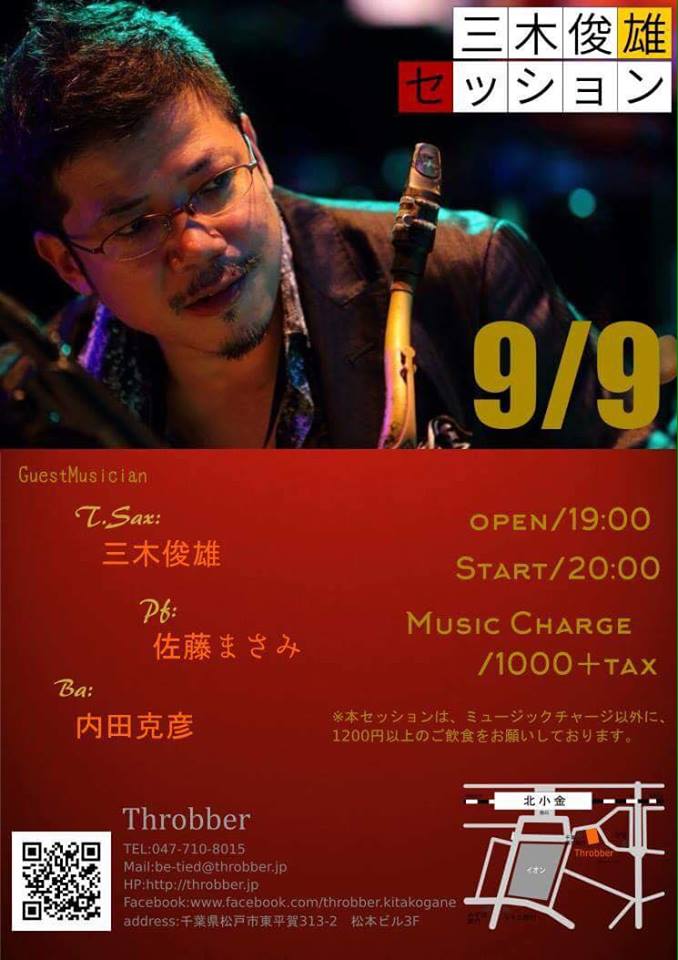★9/1(木) 新橋 cafe cottonclub http://sb.cafecottonclub.com/ 19:30~ 4stage Mai(ボーカル) BGM演奏 ★9/3(土)千葉みなと クリッパー http://clipper.mond.jp/ 19:00〜 2set 投げ銭 Sax 石塚清隆 Tp 金坂祐亮 Pf 佐藤まさみ B 北側 修 Dr 田口康介 テナーサックスプレイヤー石塚さんのリーダーライブです♪ 2管の厚みのあるサウンドをお楽しみください ★...