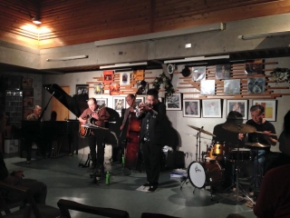 翌日10日は、昨日お世話になた先生方が仙台市KABOにてライブとの事で、勢いがついて仕事5時ポンであがって観に行くことに。 メンバーが沢野源裕さん(tp)宮本やすしさん(tp)成瀬明さん(gt)日景修さん(bs)今村陽太郎さん(ds)の2トランペットクインテット。 観に行かないわけに行きません。 セッションまで参加させていただいて... そして沢野さんを敬愛する仙台市の若き金管楽器奏者たちとフォトセッション?(笑)の模様です。 JUGEMテーマ:ジャズ