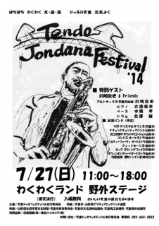 今週末はビッグバンドです。 お近くの方は是非お立ち寄り下さい。 Saltyは13:45〜の本番、仙台から”Kasumin”をゲストボーカルにお招きして、楽しく演りたいと思いま〜す! Tendo Jondana Festival 日 時 : 平成26年7月27日(日) 11:00~18:00 場 所 : わくわくランド 野外ステージ (雨天決行) 入場料 : 無料 ♪特別ゲスト 川? 敦史 & Friends 川? 敦史(アルトサックス) 大徳 俊幸(ピアノ) 北澤 誠 (ドラム) 水橋 孝 (ベース) ♪出演バンド(予定) ・YCB クリスタル サウンズ (天童市) ・ビ...