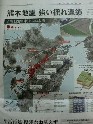 逃げても余震が続くので、不安が広がり迂闊に帰 れない熊本地震の特徴です。激甚災害指定を受け られないものでしょうか。国が消費税問題に捉わ れてためらう様では人道に外れているでしょう。 などと言う間に民間から支援する声は鳴り止まな い様子で、TV欄のひるおび縦読みメッセージは 猿でも分かる直接的な発信でしたね。全国に思い の届く方法ですし、流石の発想力と思います。 手間はかかりますが草の根とはそういう物です。 JUGEMテーマ:天変地異、災害