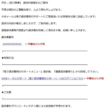 JUGEMテーマ:セキュリティ 最近、1日に何通(10通以上)、フィッシングメールなる物が届きます。 内容は以下の通りの物、類似の物が多いのが特徴です。 , , 聞きなれた運送会社名、有りそうな内容、思わず本当のメールと間違えて しまいそうなくらい良く?出来ています。 セキュリティ会社の紹介が以下になります。 , 佐川急便からの案内を装い、本文内のリンクからマルウェアへ感染させようと するメールが確認された。 日本サイバー犯罪対策...