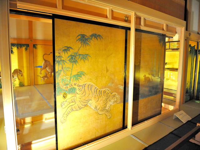 現在 名古屋城本丸御殿の ” 玄関二之間 ” と ” 一之間 ” の襖面において 重要文化財障壁画の ” 竹林豹虎図 ” が特別展示中です。 この場所で現存する障壁画は ” 4面 ” の襖が ” 2対 ” で 全部で ” 8面 ” の障壁画になります。 金箔を張った上に ” 豹 ”と ” 虎 ” が描かれており 竹林から鋭い眼光で睨みを利かせています。 これは およそ400年前に描かれ ” 8面 ” の内の &...