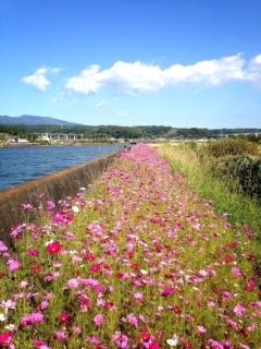 JUGEMテーマ:今日、こんなこと、あんなこと、あった。JUGEMテーマ:今日のおしゃべり仏舎利塔に向かう途中の橋を越えてすぐに右折すると堤防沿いにコスモスがたくさん咲いています。ただ今満開!!nakayama
