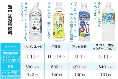 JUGEMテーマ:気になったニュース 厳しい残暑が続く中、発汗による塩分不足を補う熱中症対策飲料の売れ行きが好調だ。清涼飲料大手の伊藤園では8月以降、販売数量が前年同期比約4割増と急伸。アサヒ飲料では、乳酸菌を取り入れるなど健康管理にも配慮した商品が好評で、既に9月までの販売目標を突破したという。 メンテナンスウォーターはイマイチだった。うめソルティもイマニ(・・?瀬戸内レモンはまだ飲んでないから、やっぱりソルティライチが1番好き^_^ &nb...
