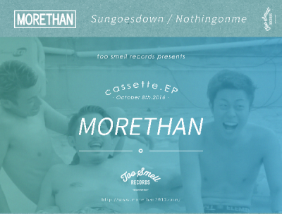 【LTD.200】 MORETHAN 『Sungoesdown/Nothingonme』 Cassette Tape+MP3ダウンロードコード ¥1000(tax in) 【TRACK LIST】 -SIDE A- 1.Sungoesdown 2.Nothingonme 3.Sussanne (WEEZER) -SIDE B- 1.Wayout -LIVE at Shinjuku Nine Spice- 2.Unplanned -LIVE at Shinjuku Nine Spice- 3.Writeoutafoul -LIVE at Shinjuku Nine Spice- &n...