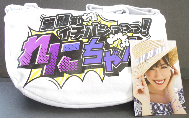 JUGEMテーマ:ももいろクローバーZ 届きました れにちゃん生誕グッズ。 キッチリ誕生日の3か月後やなw もうちょっとなんとかして欲しいよなぁ、梅雨時の楽しみなのに今は秋雨だよ。 バッグ自体はちょうど良い大きさで裏地?も付いてて一応中にポケットもあるしマチもあるので ふつーに使えると思うけど、生地が真っ白なので汚れが目立ちそう。 そんなカンジ〜。