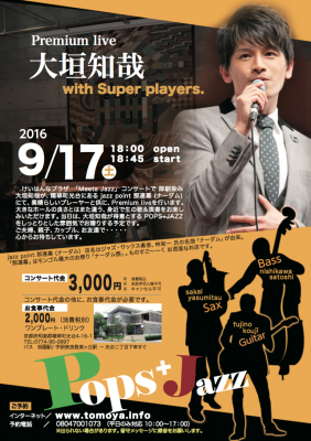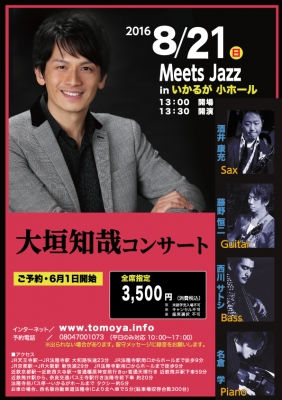 「Meets Jazz」がこの夏、斑鳩にやってくる! 暑い夏に相応しく、スイング曲に盛り上がり、バラードに酔いしれて頂きます! 凄腕ミュージシャン共に、POPSにJAZZをプラスした誰もが楽しめる選曲でお届けします。 大垣知哉、初の斑鳩でのワンマンコンサートという事もあり、かなり力を入れています。 こう、ご期待!! ご予約は明日(6/1)からスタート! 良いお席はお早目に。 大垣知哉ワンマンコンサート 『Meets Jazz in いかるが』 【日時】2016年8月2...