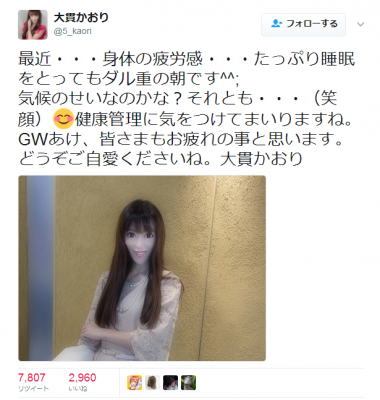JUGEMテーマ:芸能人のあんな話こんな話 大貫かおりさんという元おニャン子クラブの人だそうですが、さすがに画像加工しすぎではないでしょうか?(・ω・;) https://twitter.com/5_kaori/status/861522964121919488 ご本人はこれを自然で美しい顔になっていると思っているのでしょうか? 検索してみたらこの話題がいっぱい出てきたし(・ω・;) 【比較画像】大貫かおりの顔が変で怖い?加工がおかしいと整形疑惑? http://entert...