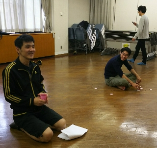 JUGEMテーマ:演劇・舞台 20日日曜は朝から夕方まで稽古でした。 午前中はひさしぶりに出演者が揃ってのおまつり 公演稽古をしました。 しの演出の方は前回を振り返ってどこをやるかを 洗い出してきたとのことで、丁寧にさらって少し 完成に近づけた感じです。 のぶさん演出の方の作品も全体構成と合わせて少し、 こちらはまとまってきた感じです。 音響オペ担当のつっちーも苦戦しながらも慣れて きたかと。 そして併せてさやかとあいが買い物に行って小道具 作成に着手...