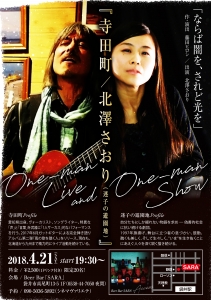 チラシ出来ました!!!!! 『寺田町/北澤さおり』One-man live & One-man show 日時:2018.4.21(sat)19:30 会場:Beer Bar SARA(袋井市) 料金:2,500円 (1ドリンク付き) 限定20名 毎回多彩なゲストを呼んでの"VS寺田町"の恒例ライブ(主催:シネマヴァリエテ)に今年は北澤さおりが新作ひとり芝居で参戦 Act23[ならば闇を、されど光を] 作・演出:藤田ヒロシ/出演:北澤さおり 予約:迷子の遊園地 http://maigo.link お問い合せ:090-5036-...