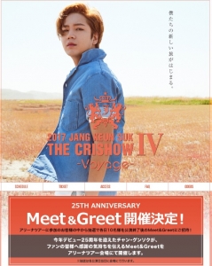 【THE CRISHOW ? Voyage】 25th Anniversary Meet&Greet 開催決定! 今年デビュー25周年を迎えたチャン・グンソクが、 ファンの皆様へ感謝の気持ちを伝えるMeet&Greetをアリーナツアー会場にて開催。 アリーナツアーに参加のお客様の中から抽選で各日10名様を公演終了後のMeet&Greetにご招待します! ※抽選は各公演日当日に会場にて行う予定です。 http://www.jang-keunsuk.jp/notice/2017/12/12162246.html http://www.jang-keunsuk.jp/cri_4_2017/ [チケットキャンプ] チャン・グンソクのライブチケット一...
