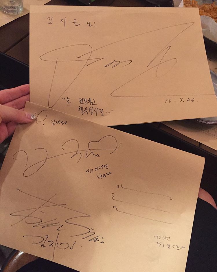 JUGEMテーマ:「三試三食」漁村編3 JUGEMテーマ:KBS2「オソオプSHOW」 MC JUGEMテーマ:イ・ソジン [イ・ソジン] ブログ村キーワード 昨夜のイソジンssiは、【オソオプSHOW】で共演された《才能寄付者》の女芸人さんのバクナレssiやギムジミンssi達とご一緒だったご様子…サインに書かれたハングルが読めると、さらに詳しいことが分かるのでしょうが、画像に添えられた情報だけでは??!!…(>_<。)同席された方がイソジンssiに書いてもらったサイン〜〜(*^▽^*)♪♪い〜〜〜...