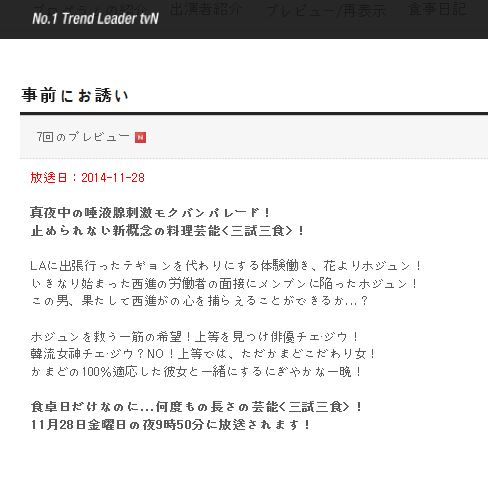 JUGEMテーマ:「三試三食」〜自給自足の有機ライフ〜 JUGEMテーマ:イ・ソジン [イ・ソジン] ブログ村キーワード 2014.12.5 追記 : 今夜放送の「삼시세끼(Samsi meals)」第8回…ゲストのお二人が俳優界の大御所なだけに、昨日はフェイスブックに続々と話題やら動画がアップされていました♪♪…その中から、第7回でチェジウssiに「おっぱぁ〜まな板に泡が残ってる…」とチェックされたイソジンssiが、「とっても良いよ〜(ノムチョアヨ〜)♪♪」と嬉しそうにインタビューに答えちゃ...