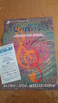 スタジオライフ30周年記念公演第2弾 音楽劇『真夏の夜の夢』を観てきた 場所は中野ウエストエンドスタジオ 小さなビルの地下 最前列席に座ると役者の汗やツバが 飛んでくるぐらいの小劇場という情報が 入っていたのでどんな舞台なんだろうと ワクワクして行った・・・ 狭い空間をうまく利用していて こんな狭い所でもお芝居ができるんだ〜と 関心してしまいました。 役者さんたちの動きがスゴイ機敏で狭い劇場を 走り回っているからケガでもしないかと ヒヤヒヤする場面もあったけど・・・・ とにかく、お芝居...